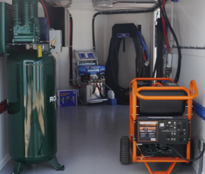 The current setup uses a Gas Generator (22KW) and a Gas Air Compressor (13HP). Upgrading to a 27KW Gas Generator allows you to upgrade to an Electric Air Compressor so you dont have to worry about fueling up two engines.